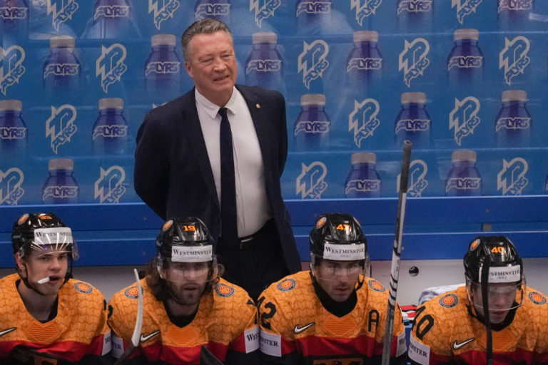 Hlavný tréner Nemecka Harold Kreis počas zápasu základnej B-skupiny proti Švédsku na MS v hokeji 2024. Ostrava (Ostravar Aréna), 13. máj 2024. Foto: SITA/AP