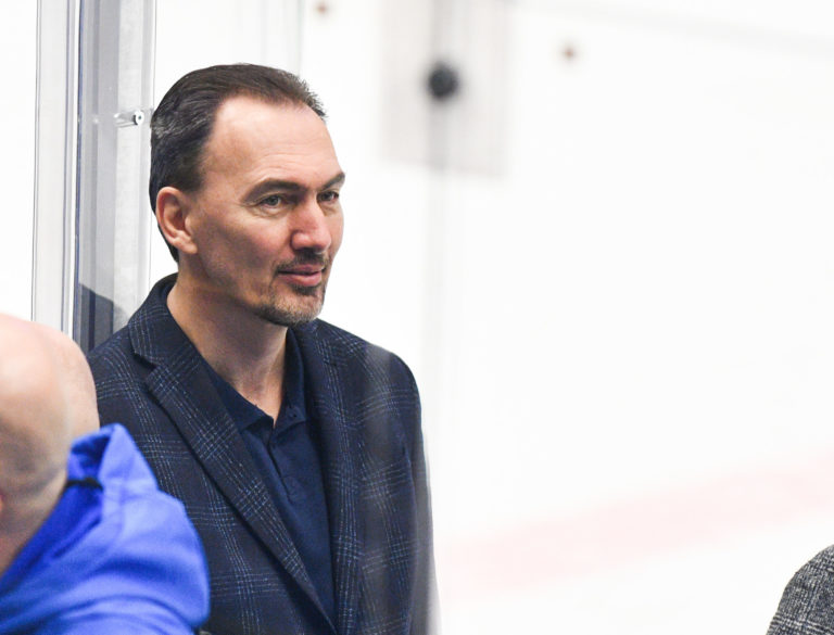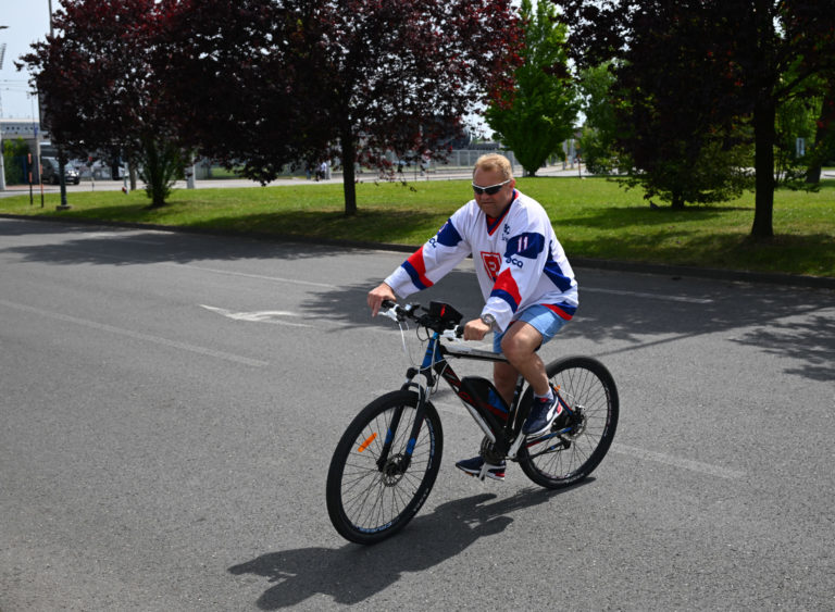 Generálny manažér slovenskej reprezentácie Miroslav Šatan počas predzápasového rozkorčuľovania pred zápasom Slovensko - Nemecko základnej B-skupiny majstrovstiev sveta v ľadovom hokeji 2024 v Českej republike. Ostrava, Česká republika, 10. máj 2024. Foto: SITA/Martin Medňanský.