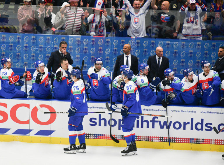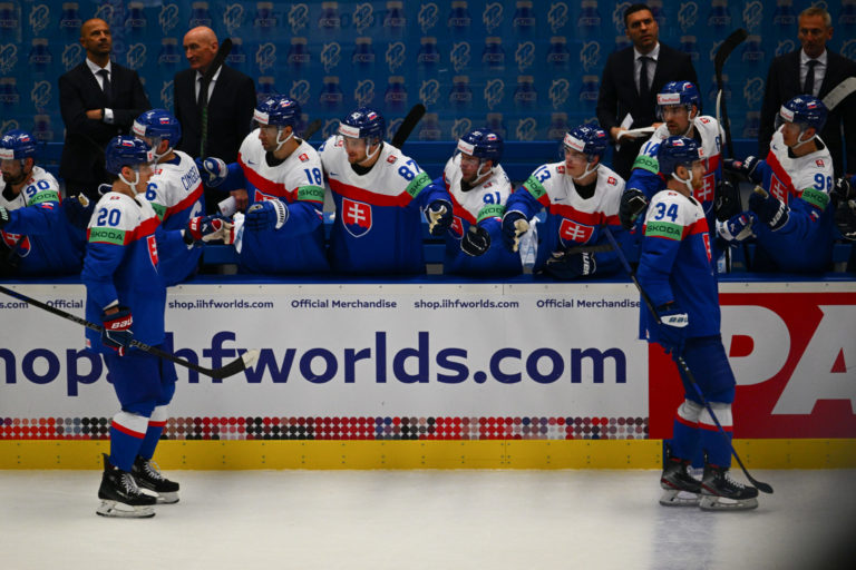 Striedačka hokejistov Slovenska počas zápasu Slovensko - Nemecko základnej B-skupiny majstrovstiev sveta v ľadovom hokeji 2024 v Českej republike. Ostrava, Česká republika, 10. máj 2024. Foto: SITA/Martin Medňanský
