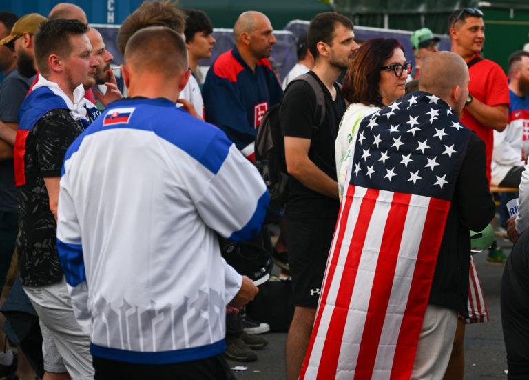 Atmosféra pred vstupom do Ostravar Arény pred zápasom Švédsko - Slovensko v základnej B-skupine na MS v hokeji 2024. Ostrava, 21. máj 2024. Foto: SITA/Martin Medňanský.