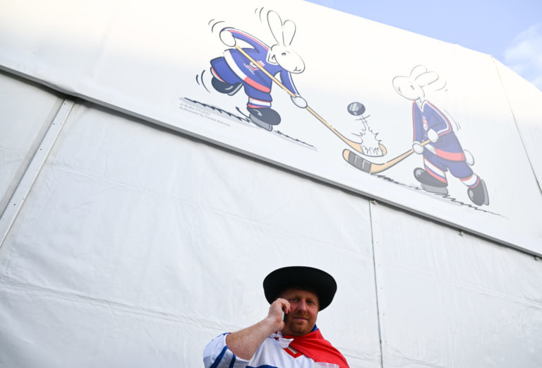 Fanúšikovia pred zápasom základnej B-skupine na MS v hokeji 2024 medzi Švédskom a Slovenskom. Ostrava, 21. máj 2024. Foto: SITA/Martin Medňanský.