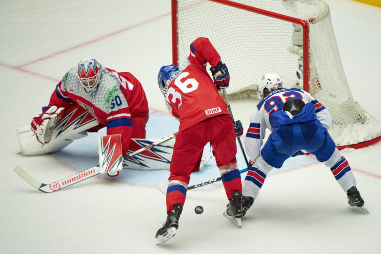 Tralmaksa v zápase základnej A-skupiny na MS v hokeji 2025. Štokholm (Avicii Arena), 20. máj 2025. Foto: Pontus Lundahl/TT News Agency via AP.