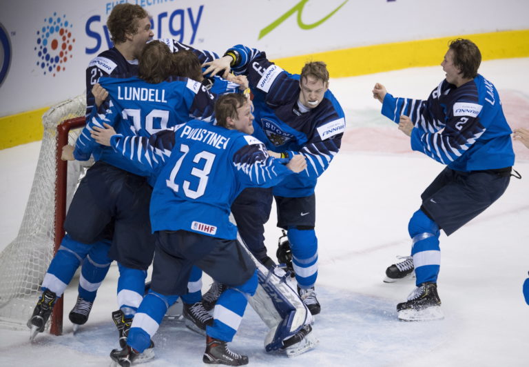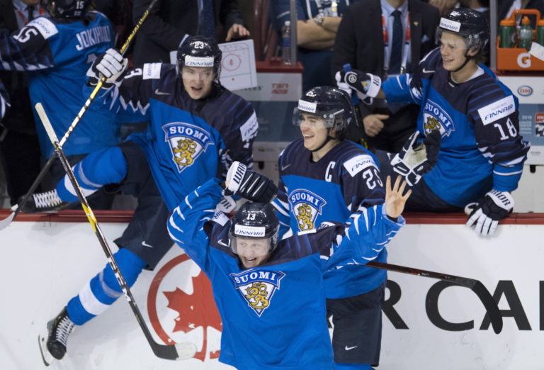 Fínski hokejisti sa tešia zo zisku zlata po triumfe vo finále MS v hokeji do 20 rokov, Vancouver, Kanada, 5. január 2019.
