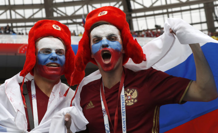 Fanúšikovia pred úvodným zápasom MS vo futbale 2018 medzi Ruskom a Saudskou Arábiou. Moskva, 14. jún 2018. Foto: SITA/AP.