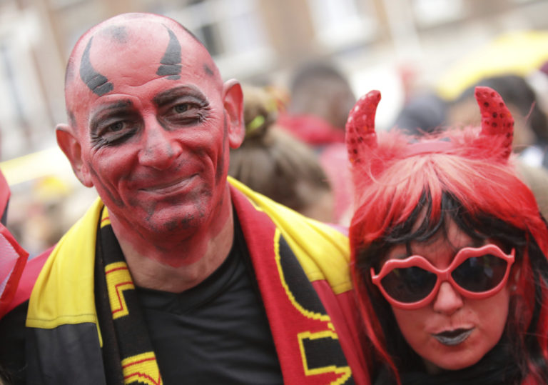 Belgickí fanúšikovia fandia na MS vo futbale 2018 v Rusku, 10. júl 2018. Foto: SITA/AP