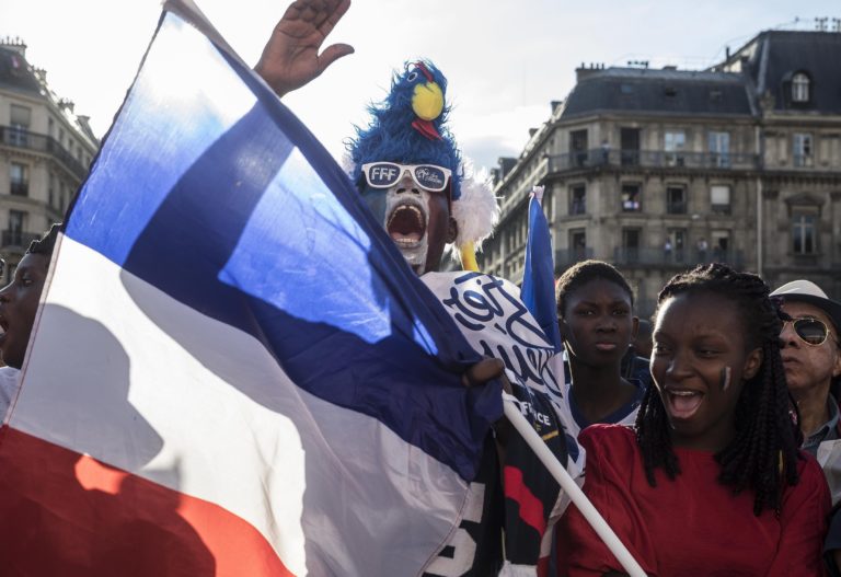 Francúzsky fanúšik fandí počas zápasu na MS vo futbale 2018 v Rusku, 10. júl 2018. Foto: SITA/AP