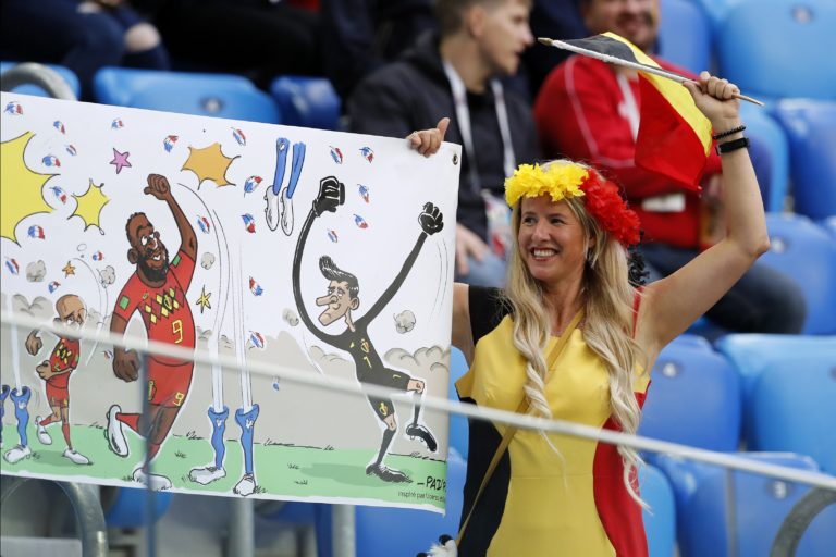 Fanúšikovia Belgicka fandia počas zápasu na MS vo futbale 2018 v Rusku, 10. júl 2018. Foto: SITA/AP