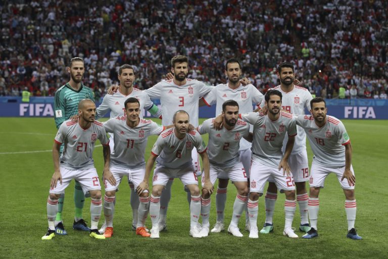 Hráči Španielska pred zápasom B skupiny proti Iránu na MS vo futbale 2018 v Rusku, 20. júna 2018 Foto: SITA/AP