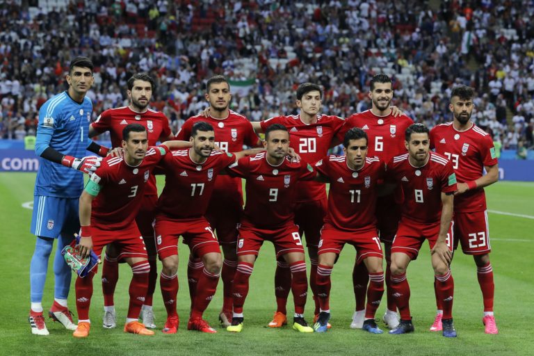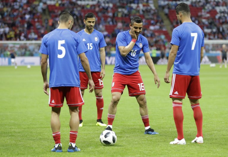 Hráči Iránu pred zápasom B skupiny proti Španielsku na MS vo futbale 2018 v Rusku, 20. júna 2018 Foto: SITA/AP