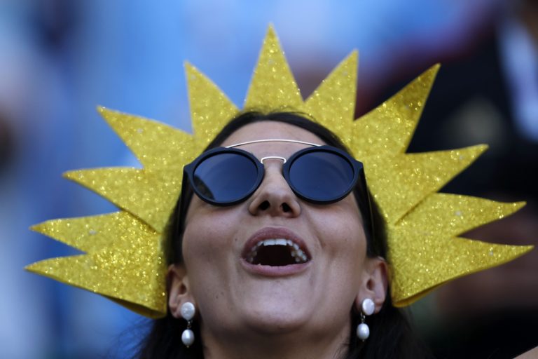 Uruguajská fanúšička čaká na zápas a fandí svojmu tímu na MS vo futbale 2018 v Rusku, 20. júna 2018 Foto: SITA/AP
