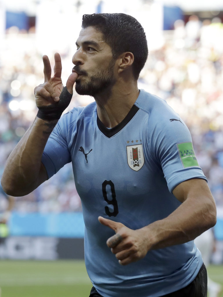 Uruguajský hráč Luis Suarez oslavuje svoj otvárací gól v zápase A skupiny Uruguay - Saudská Arábia na MS vo futbale 2018 v Rusku, 20. júna 2018 Foto: SITA/AP