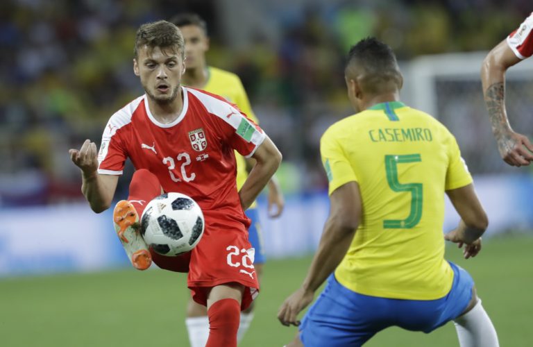 Srb Adem Ljajic (vpravo) s Brazílčanom Casemirom počas zápasu na MS vo futbale 2018, 27. júna 2018 Foto: SITA/AP