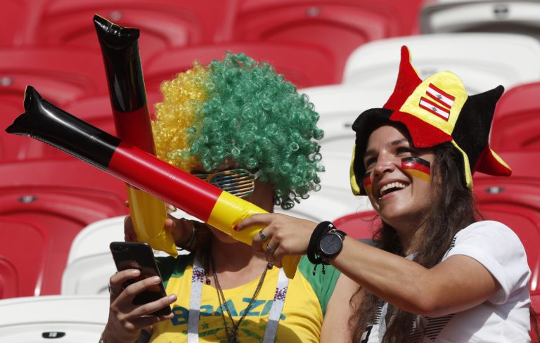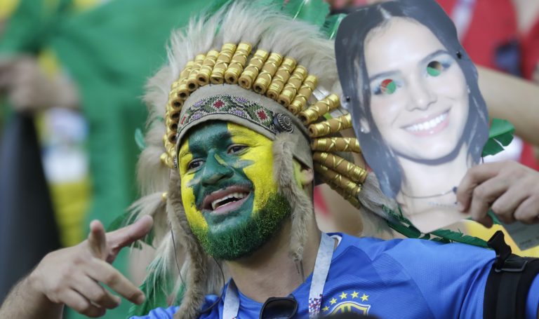 Fanúšik Brazílie fandí na zápase na MS vo futbale 2018, 27. júna 2018 Foto: SITA/AP