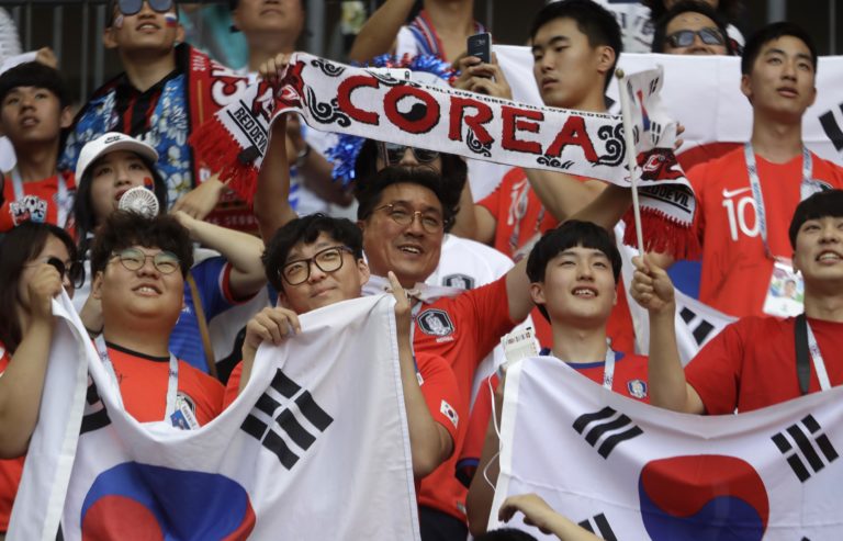 Kórejskí fanúšikovia počas zápasu na MS vo futbale 2018, 27. júna 2018 Foto: SITA/AP