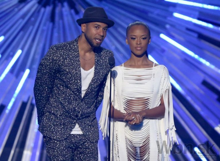Jussie Smollett, vľavo, a Serayah uvádzajú ocenenie v kategórii videoklip s najlepším posolstvom. Los Angeles, 30. augusta 2015. Foto: SITA/AP