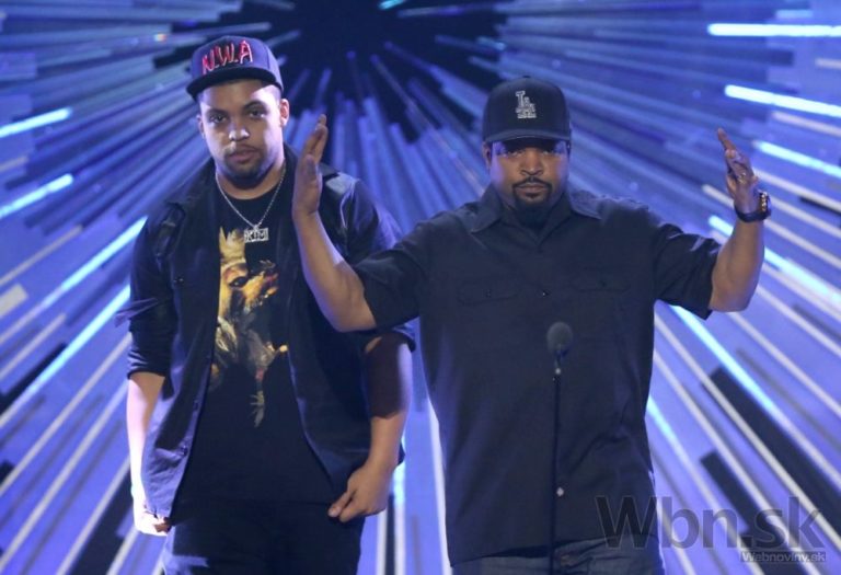 Noc plná hviezd. Los Angeles má za sebou jeden z najočakávanejších večerov roka, kedy sa po červenom koberci prejdú desiatky hviezd v očakávaní zisku toho najhodnotnejšieho ocenenia. Na fotografii: O’Shea Jackson Jr., vľavo, a Ice Cube uvdzajú cenu pre pop video roka. Los Angeles, 30. augusta 2015. Foto: SITA/AP