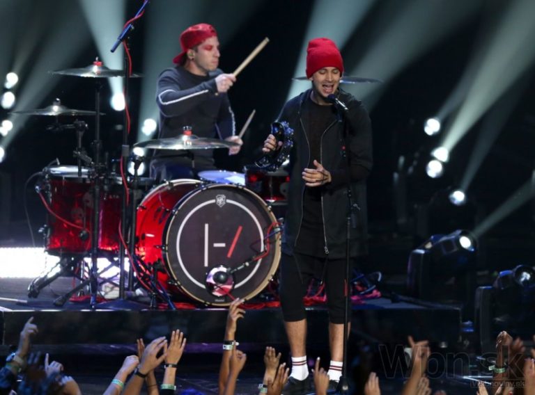 Noc plná hviezd. Los Angeles má za sebou jeden z najočakávanejších večerov roka, kedy sa po červenom koberci prejdú desiatky hviezd v očakávaní zisku toho najhodnotnejšieho ocenenia. Na fotografii: Josh Dun, vľavo, a Tyler Joseph z kapely 21 Pilots. Los Angeles, 30. augusta 2015. Foto: SITA/AP