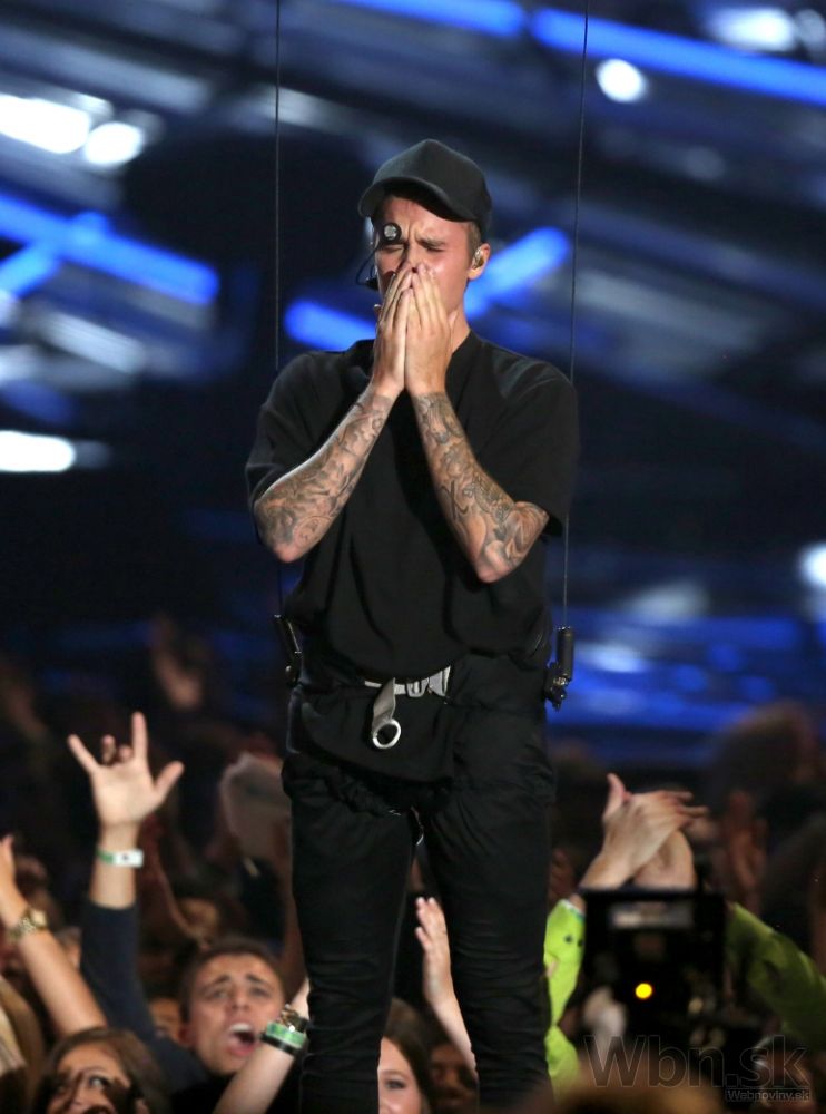 Noc plná hviezd. Los Angeles má za sebou jeden z najočakávanejších večerov roka, kedy sa po červenom koberci prejdú desiatky hviezd v očakávaní zisku toho najhodnotnejšieho ocenenia. Na fotografii: Justin Bieber po vystúpení na MTV Video Music Awards. Los Angeles, 30. augusta 2015. Foto: SITA/AP