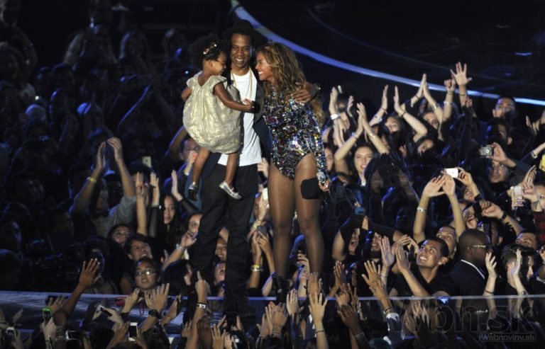 Beyoncé odovzdal Michael Jackson Video Vanguard Award za prínos televízii MTV jej manžel Jay Z s dcérkou Blue Ivy. Foto: SITA/AP