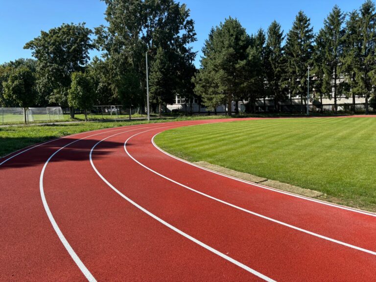 Zrevitalizovaná Multifunkčná športová hala Pankúchova, miestny atletický ovál a školskej plaváreň pred slávnostným otvorením, ktoré sa bude konať 1. septembra 2025 od 15:00 - 19:00 v areáli Základnej školy Pankúchova 4 v bratislavskej Petržalke. Bratislava, 28. august 2025. Foto: SITA/Mestská časť Bratislava-Petržalka