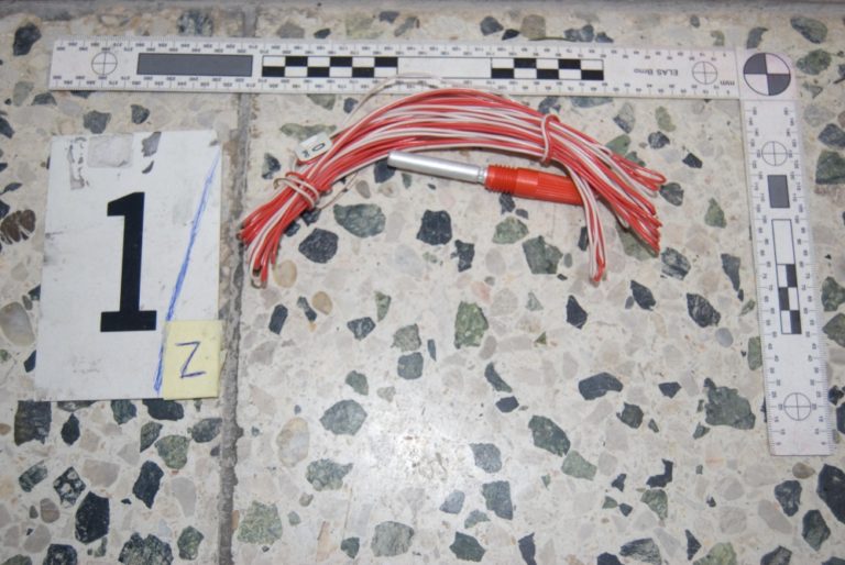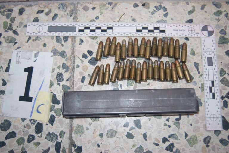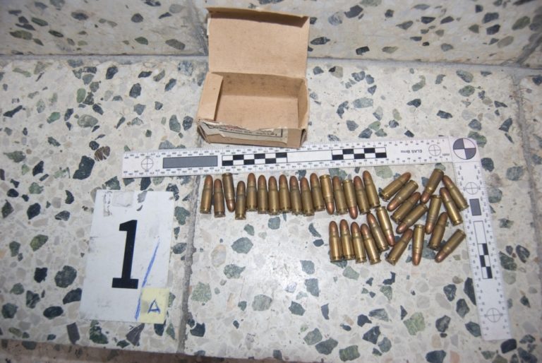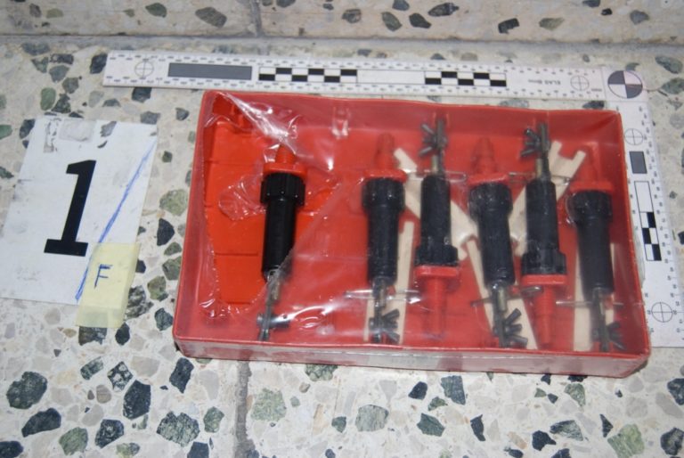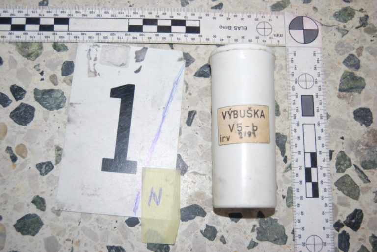 Prekvapenie čakalo pri upratovaní na nového majiteľa rodinného domu v Leviciach. V pivnici našiel desať výbušiek, šesť zapaľovačov, dve elektrické rozbušky, dva zásobníky a 118 nábojov. Bratislava, 4.marec 2014. Foto: SITA/KRPZ Nitra
