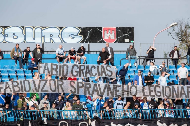 Fanúšikovia Slovana počas zápasu 26. kola Corgoň ligy 2013/14 medzi ŠK Slovan Bratislava a Spartak Myjava. Foto: SITA/Jozef Jakubčo