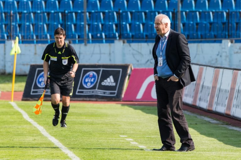 Pomocný tréner Slovana Dušan Galis (vpravo) počas zápasu 26. kola Corgoň ligy 2013/14 medzi ŠK Slovan Bratislava a Spartak Myjava. Foto: SITA/Jozef Jakubčo