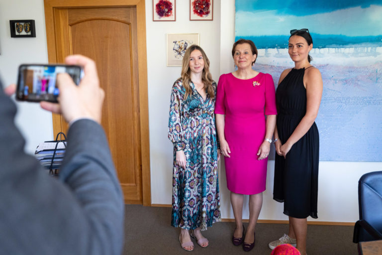Štátna tajomníčka Ministerstva zahraničných vecí a európskych záležitostí SR Ingrid Brocková (vpravo) počas Dňa otvorenej diplomacie na Ministerstve zahraničných vecí a európskych záležitostí SR. Bratislava, 17. jún 2023. Foto: SITA/Jana Birošová