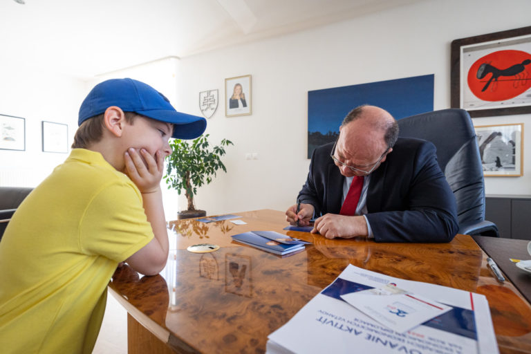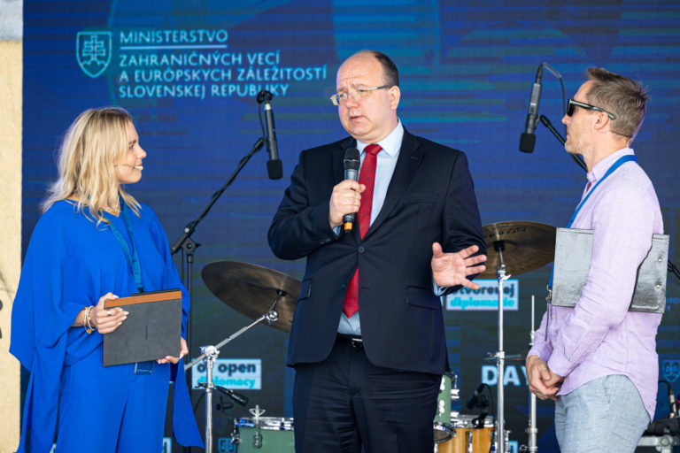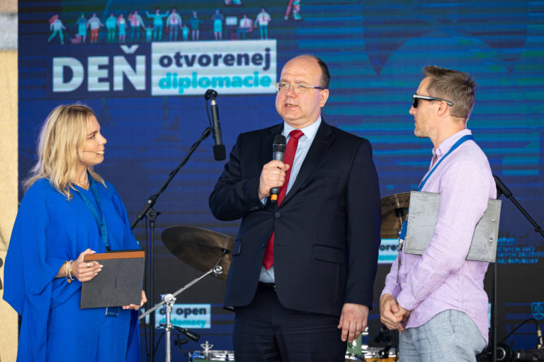 Minister zahraničných vecí a európskych záležitostí Slovenskej republiky Miroslav Wlachovský (uprostred) počas Dňa otvorenej diplomacie na Ministerstve zahraničných vecí a európskych záležitostí SR. Bratislava, 17. jún 2023. Foto: SITA/Jana Birošová