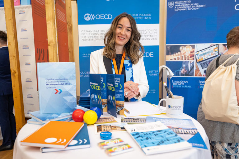 Štátna tajomníčka Ministerstva zahraničných vecí a európskych záležitostí SR Ingrid Brocková (druhá sprava) počas Dňa otvorenej diplomacie na Ministerstve zahraničných vecí a európskych záležitostí SR. Bratislava, 17. jún 2023. Foto: SITA/Jana Birošová