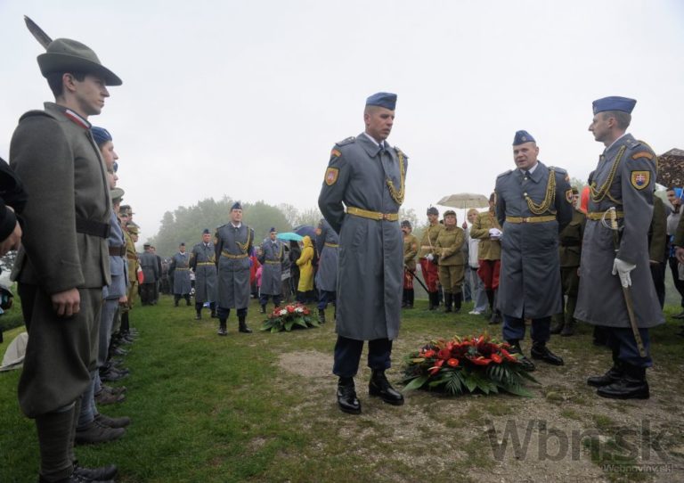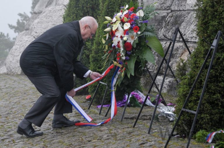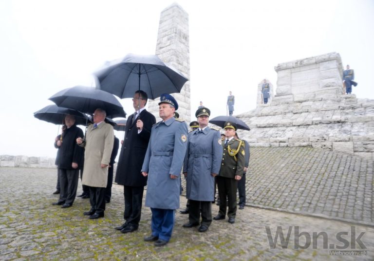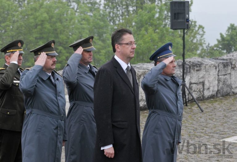 Minister obrany Martin Glváč (druhý sprava) na spomienkovej slávnosti na Bradle pri príležitosti 95. výročia tragickej smrti generála M. R. Štefánika. Mohyla M. R. Štefánika, Bradlo, okres Myjava, 3. máj 2014. Foto: SITA/Martin Medňanský