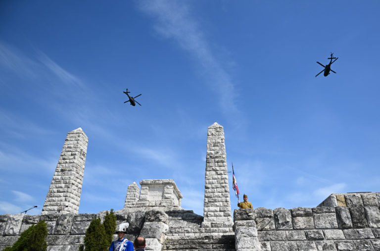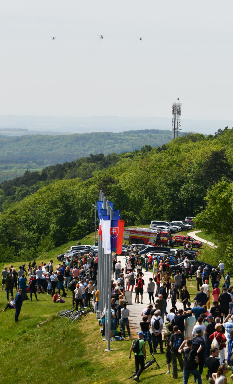 Atmosféra na Mohyle Milana Rastislava Štefánika na Bradle počas celoslovenskej spomienky pri príležitosti 105. výročia tragickej smrti generála Milana Rastislava Štefánika. Brezová pod Bradlom, okr. Myjava, 4. máj 2024. Foto: SITA/Martin Medňanský.