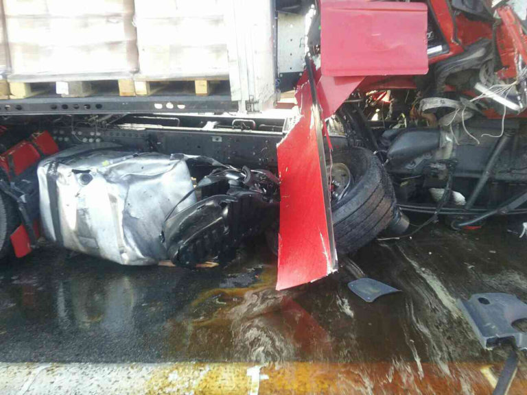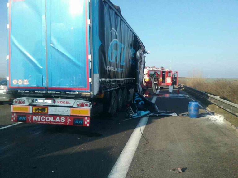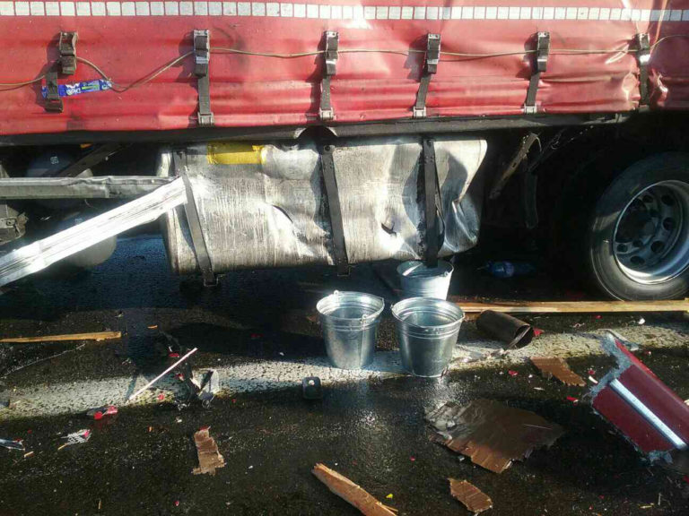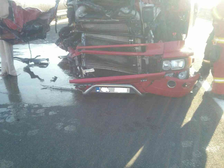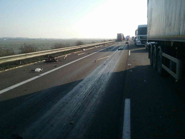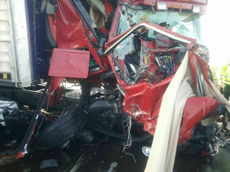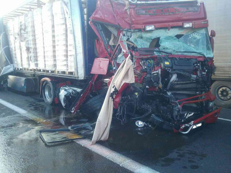 Na dia¾nici D2 v smere z Maïarska do Bratislavy havarovali dnes po 09:00 dva kamióny. Pri nehode unikli vo väèom mnostve pohonné hmoty. Hasièi poskytli úèastníkom nehody prvú pomoc, zabezpeèili miesto nehody, vykonali protipoiarne opatrenia a zasypávajú a zachytávajú unikajúce prevádzkové kvapaliny. Bratislava, 5. február 2018. Foto: SITA/HaZZ Bratislava