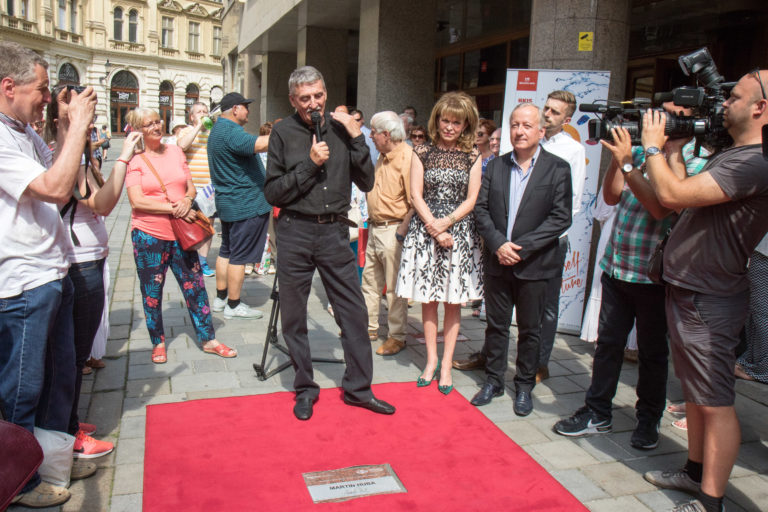Meno Martin Huba pribudlo na chodníku slávy ako ôsme v poradí. Za uplynulé roky odhalili dlaždice Eve Krížikovej, Ladislavovi Chudíkovi, Jozefovi Adamovičovi, Štefanovi Kvietikovi, Ivanovi Palúchovi, Emílii Vášáryovej či Márii Kráľovičovej, ktorá prišla Hubovi osobne zablahoželať.