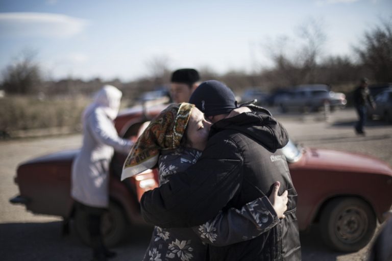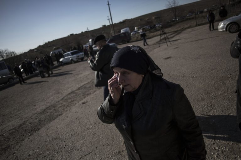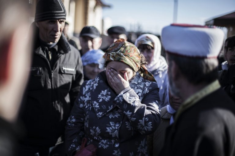 Na Kryme sa v utorok 18. marca uskutočnil pohreb 38-ročného Tatára Rešata Ametova, ktorého miestna komunita považuje za prvú obeť ruskej okupácie na ukrajinskom polostrove. S ľudskoprávnym aktivistom sa prišli rozlúčiť tisícky ľudí. Simferopoľ, 18. marca 2014. Foto: SITA/AP