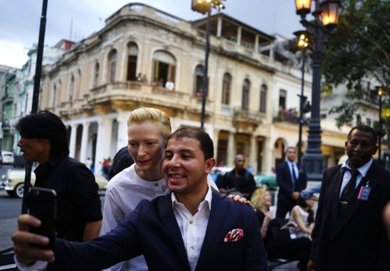 Herečka Tilda Swinton pózuje pre selfie. Foto: SITA/AP