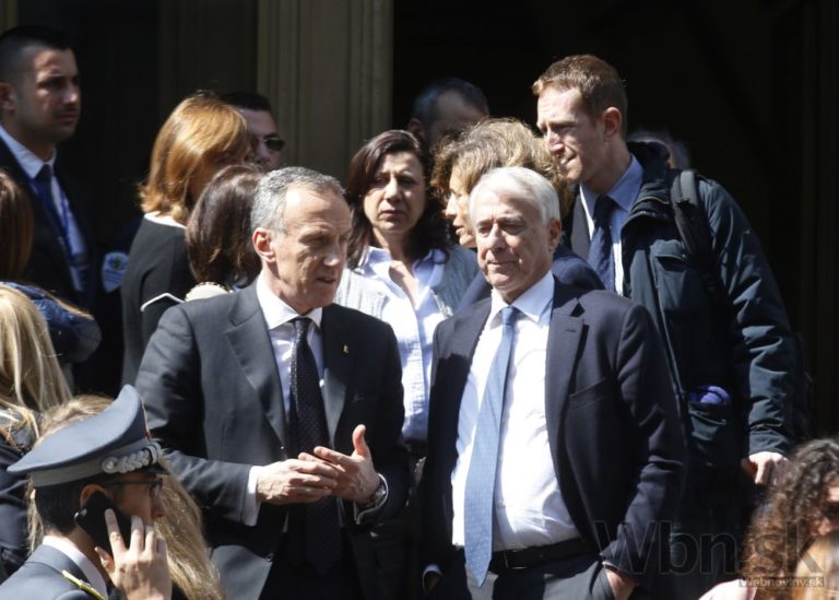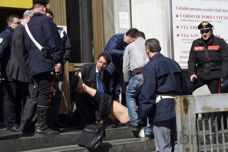 Sprava: Starosta Giuliano Pisapia a šéf milánskej polície Luigi Savina pred budovou Justičného palácu v Miláne 9.4.2015. Foto: SITA/ AP