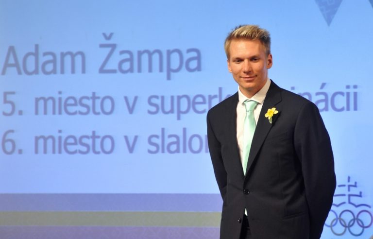 Ocenený Adam Žampa počas slávnostného večera olympionikov organizovaného Slovenským olympijským výborom (SOV). Bratislava, 11. apríl 2014. Foto: SITA/Ján Slovák