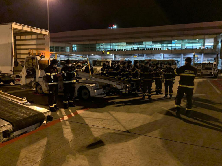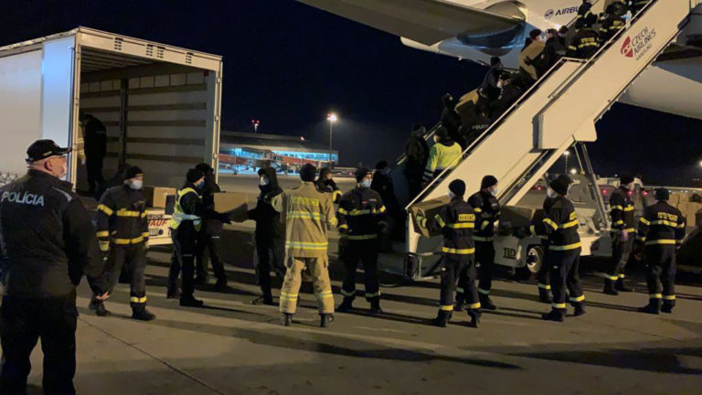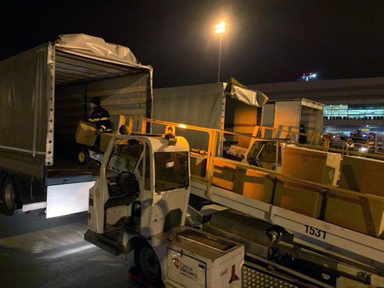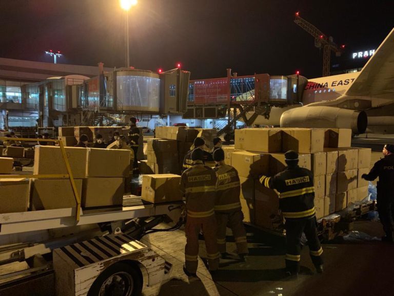 Na letisko v Prahe dorazili tony zdravotníckeho materiálu z Číny. 24. marec 2020 Foto: www.facebook.com