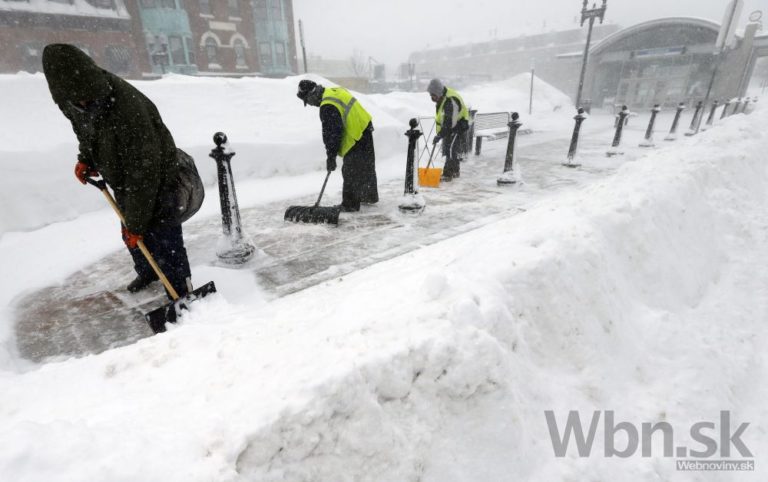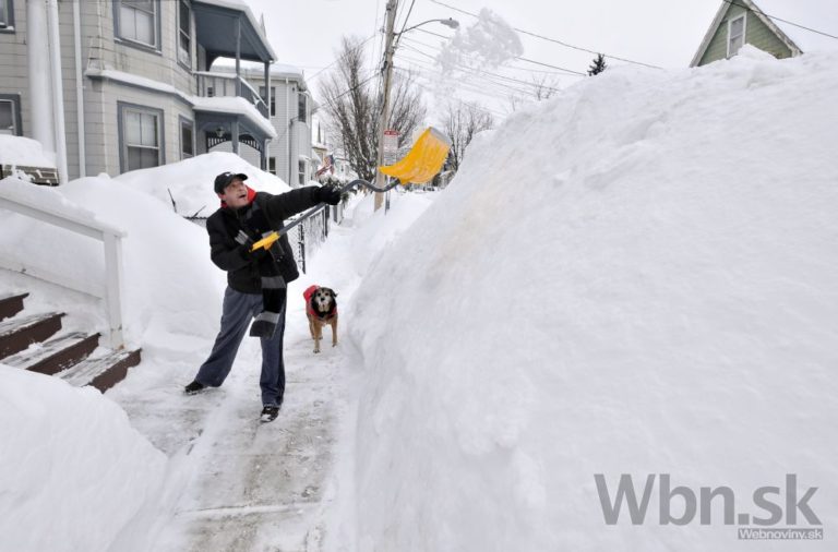 V Bostone za tri napadlo ďalších 60 centimetrov snehu, pričom pred týždňom tam namerali skoro 90 centimetrov. Úrady už varovali, že pod náporom snehu by sa mohli zrútiť niektoré ploché strechy, Boston, 10. Feb., 2015. Foto: SITA/AP