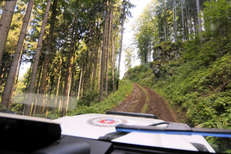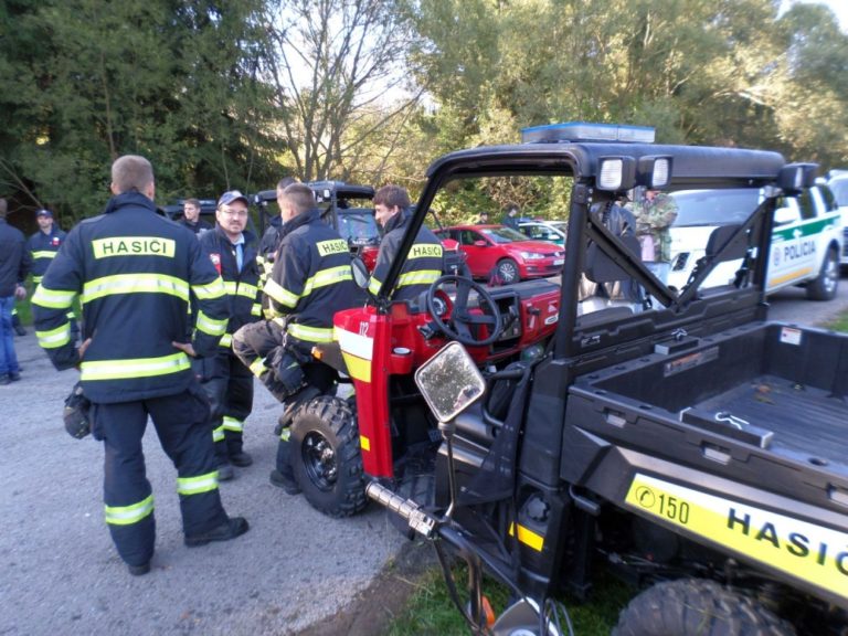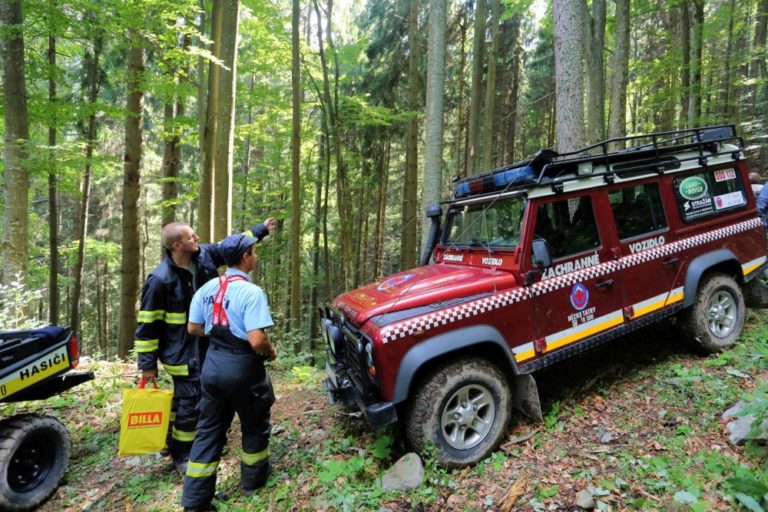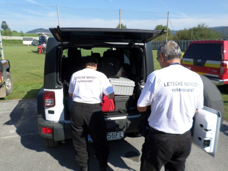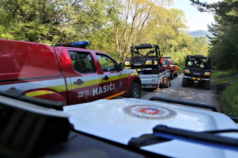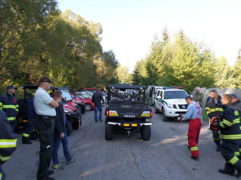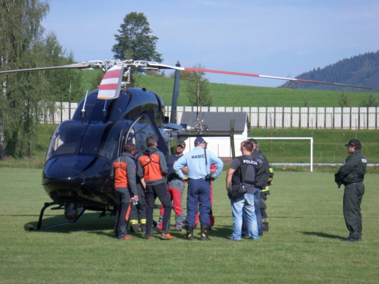 Policajné a záchranné zložky zasahujúce po páde vrtuľníka Bell 429. Záchranársky vrtuľník spoločnosti AIR – TRANSPORT EUROPE (ATE) sa zrútil s trojčlennou posádkou a zranenou osobou v lokalite Bukovina pri obci Strelníky. Haváriu neprežili traja členovia posádky a pacient. Strelníky, 8. september 2016. Foto: SITA/Štefan Plevo