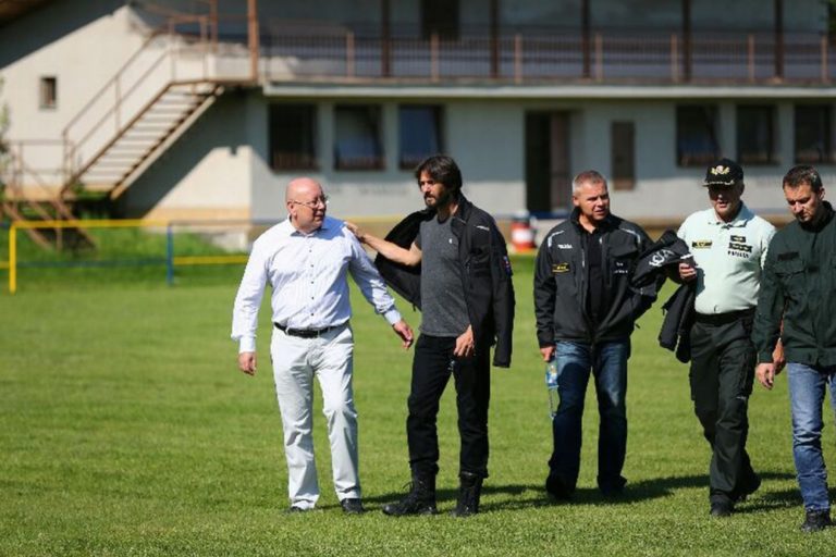 Minister vnútra SR Robert Kaliňák (druhý zľava) na futbalovom ihrisku v obci Strelníky, kde sa rozložili policajné a záchranné zložky zasahujúce po páde vrtuľníka Bell 429. Záchranársky vrtuľník spoločnosti AIR – TRANSPORT EUROPE (ATE) sa zrútil s trojčlennou posádkou a zranenou osobou v lokalite Strelníky pri Banskej Bystrici. Haváriu neprežili traja členovia posádky a pacient. Strelníky, 8. september 2016. Foto: SITA/Peter Rusko