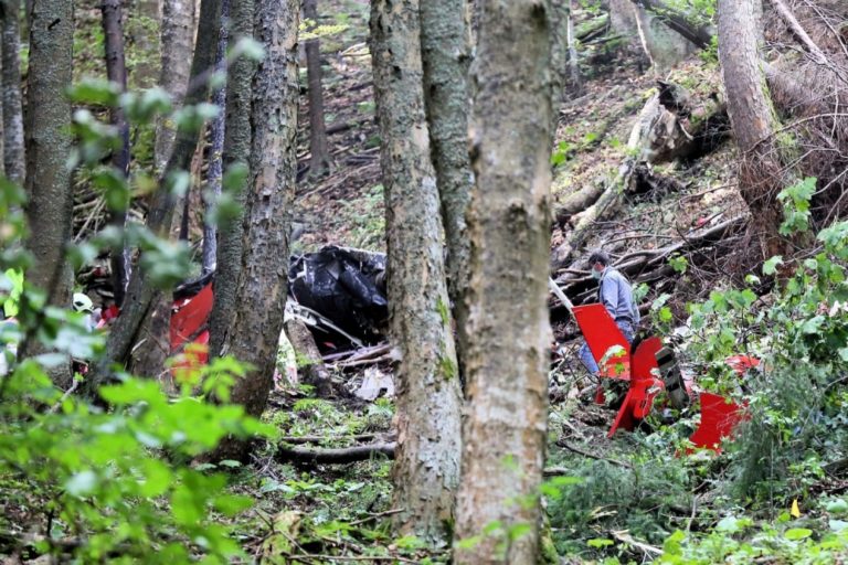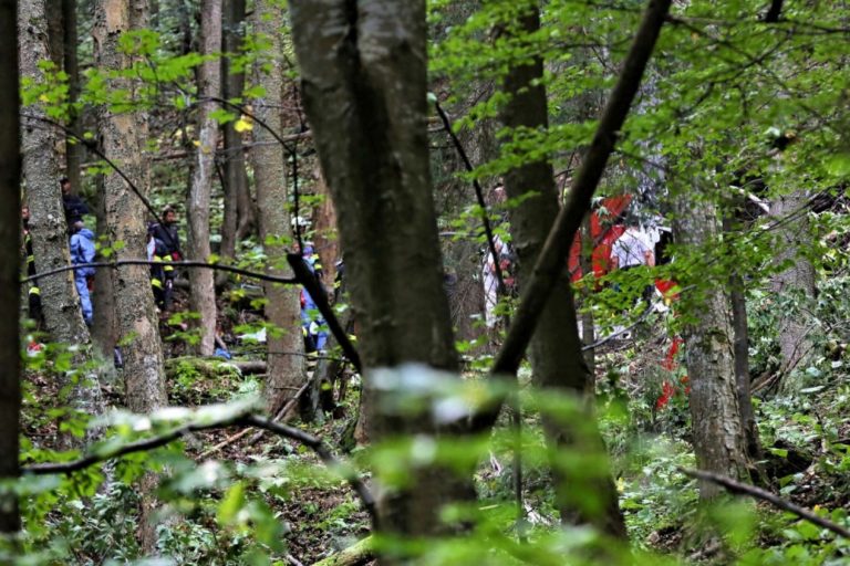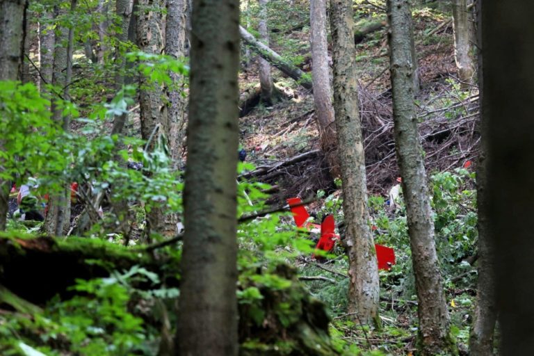 Miesto, kde havaroval vrtuľník Bell 429. Záchranársky vrtuľník spoločnosti AIR – TRANSPORT EUROPE (ATE) sa zrútil v lokalite Bukovina pri obci Strelníky. Haváriu neprežili traja členovia posádky a pacient. Strelníky, 8. september 2016. Foto: SITA/Peter Rusko
