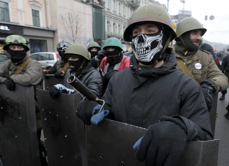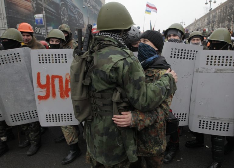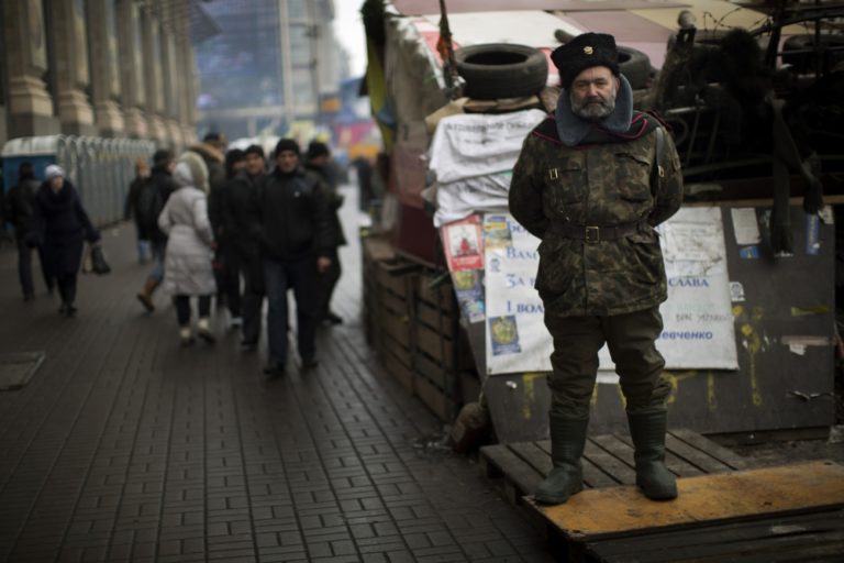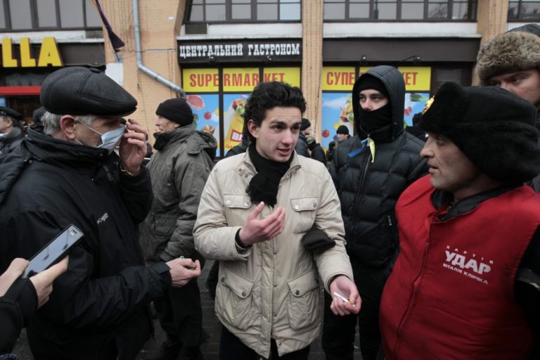 Vyše dvoch tisíc prívržencov ukrajinskej vlády sa v sobotu zhromaždili v centre Kyjeva na opačnej strane barikády, ktorá chráni protestné stanové mestečko. Demonštranti sú nahnevaní už mesiace trvajúcimi protivládnymi protestmi. Pneumatikami preto zablokovali jednu z hlavných tepien ukrajinského hlavného mesta.