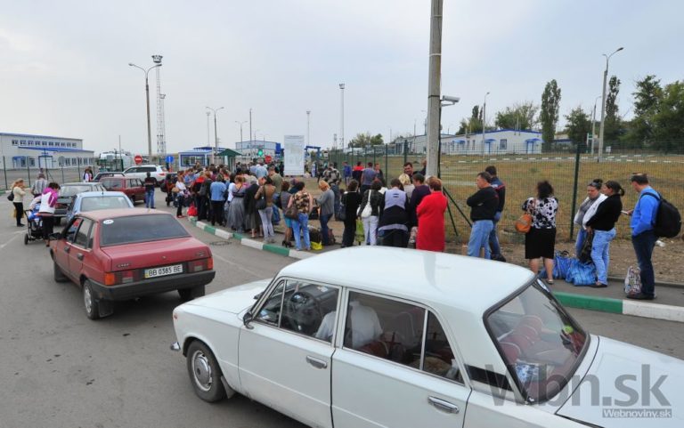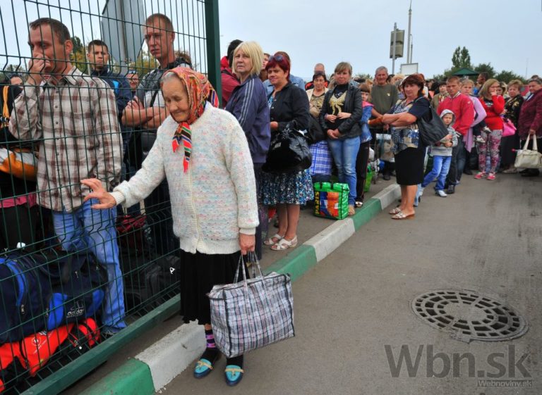 Ukrajinskí utečenci stoja v rade, aby sa vrátili do svojich domovov na východe Ukrajiny. Doneck, Rusko, 12. septembra 2014. Foto: SITA/AP