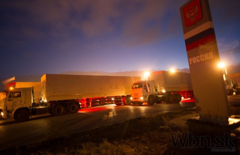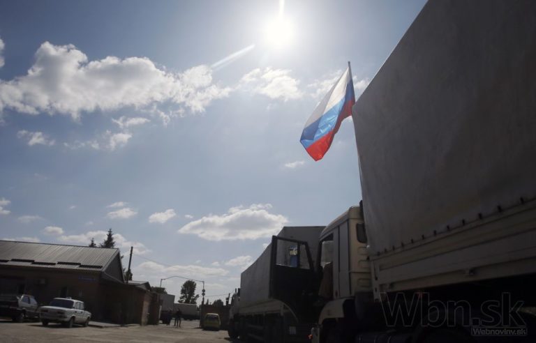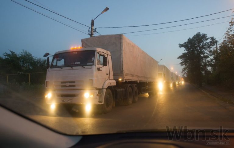 Ruské kamióny doviezli na východ Ukrajiny humanitárnu pomoc pre bojujúcich povstalcov. Rusko, 12. septembra 2014. Foto: SITA/AP