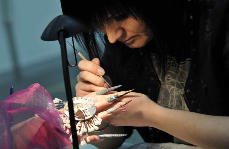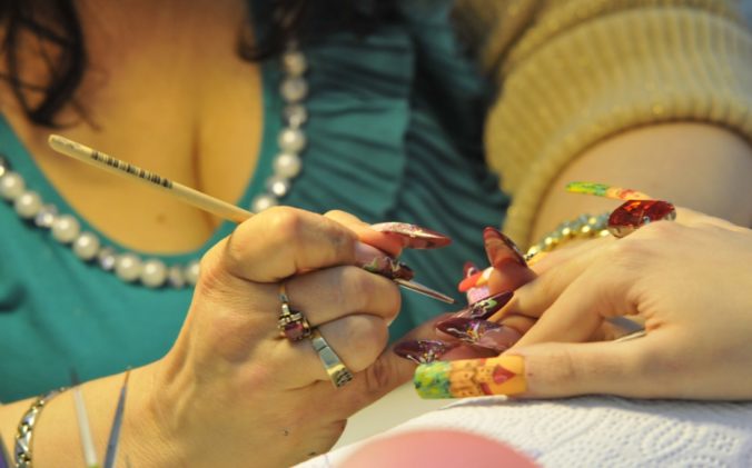 Dizajnérka upravuje nechty počas Majstrovstiev Slovenskej republiky v Nail Designe 2014 v rámci 22. ročníka medzinárodného kozmetického veľtrhu Beauty Forum Slovakia 2014 v trvaní od 20. do 22. marca. Trenčín, 20. marec 2014. Foto: SITA/Tomáš Somr