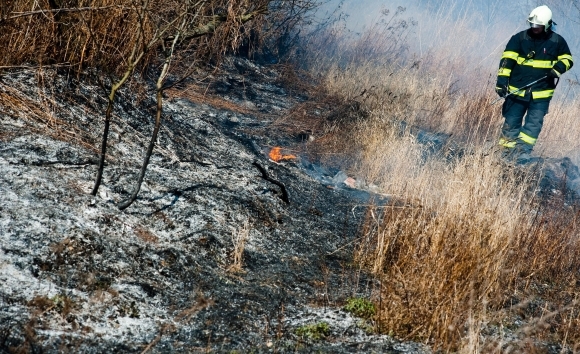 Medzi Devínskym Jazerom a Zohorom vypukol predpoludní rozsiahly požiar trávnatého porastu, na mieste zasahovali hasiči z Bratislavy aj Malaciek. Pre požiar Železničná spoločnosť Slovensko, a. s. prerušila dopravu. Z tohto dôvodu meškali aj dva medzinárodné vlaky EC 273 Jaroslav Hašek z Prahy do Budapešti a EC 170 Hungaria z Budapešti cez Bratislavu do Prahy a Berlína. Foto: SITA/Marián Peiger