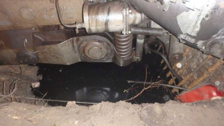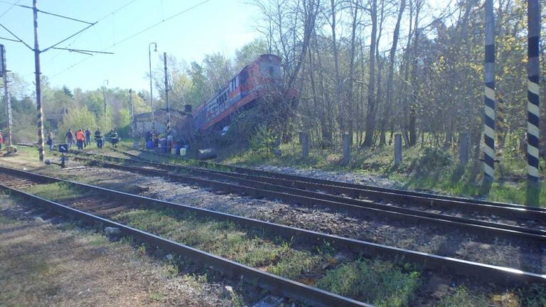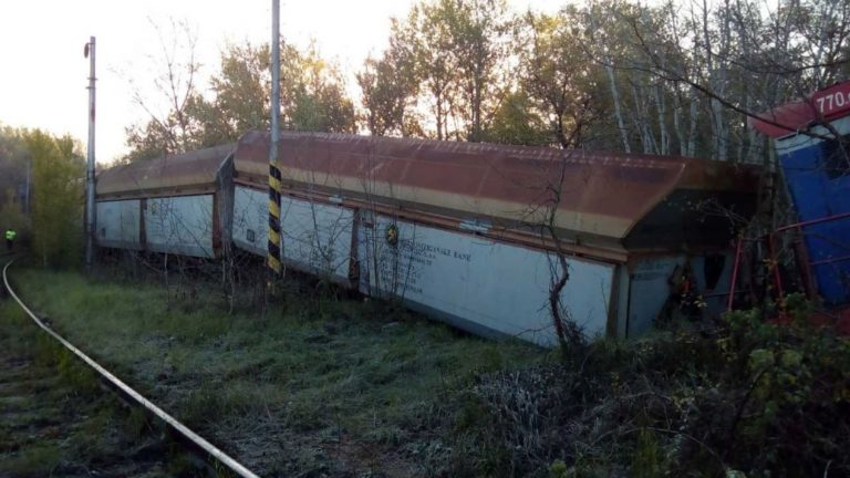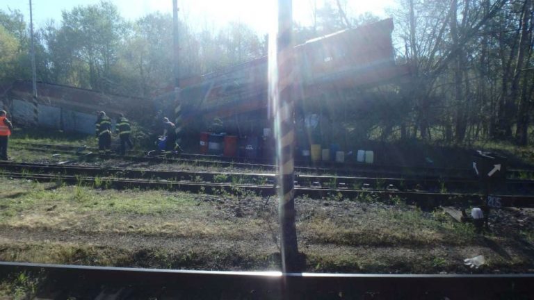 Hasiči zo Senice, Kútov a Holíča boli vo švrtok 21. apríla privolaní k vykoľajenému rušňu nákladného vlaku s uhlím na Železničiarskej ulici v Kútoch. Rušeň narazil do betónového stĺpa, pričom z poškodenej nádrže vytieklo do záchytného kanála asi 1 600 litrov paliva. Hasičom sa podarilo prečerpať z kanála asi 1 200 litrov paliva, potom miesto odovzdali správcovi koľajiska. Na mieste je aj Inšpekcia životného prostredia. Foto: SITA/KR HaZZ v Trnave