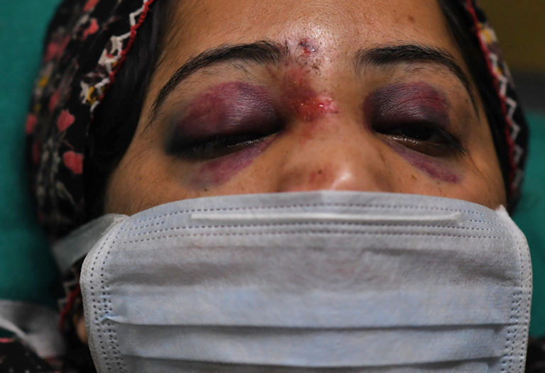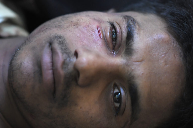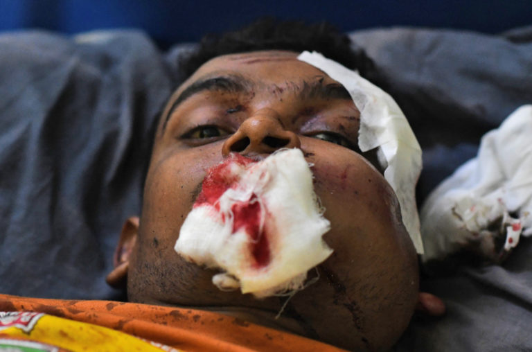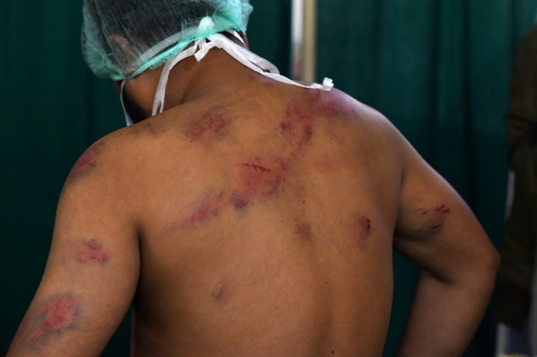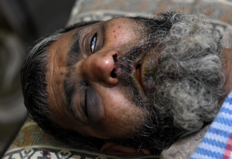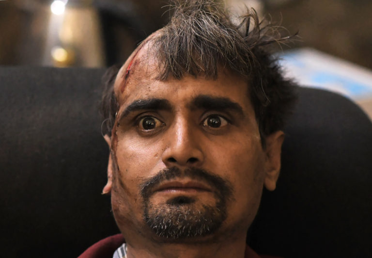 In this Tuesday, Feb. 25, 2020, photo, a man receives treatment after being injured during clashes between Hindu mobs and Muslims protesting a contentious new citizenship law, at Al-Hind hospital in old Mustafabad area of New Delhi, India. The death toll from three days of mob violence rose to 18 on Wednesday, according to a doctor at a hospital where many of the injured were treated. A resident of Mustafabad Rouf Khan, 43, said the mobs were wielding iron rods, bricks and bamboo sticks and attacked the homes of Muslims amid chants of "Jai Shri Ram," or "Victory to Lord Ram," the popular Hindu god of the religious epic "Ramayana. After forcing inside the homes, they went on a rampage and started beating people and breaking household items," said Khan, adding that he and his family had to run out of fear and take shelter inside a nearby mosque that he said was guarded by thousands of Muslim men. (AP Photo/Rohit Lohia)